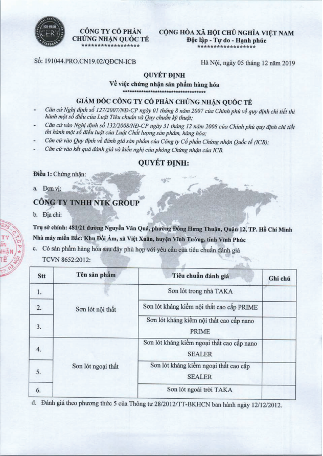 Công ty TNHH NTK GROUP là công ty hoạt động xuất nhập khẩu các loại Sơn, phụ gia chống thấm Sơn OSKY’S chất lượng cao trên thị trường;… Với nỗ lực hoạt động của cán bộ,chuyên gia và công nhân viên, đã có hơn 10 năm kinh nghiệm hoạt động trong sơn đến nay chúng tôi đã trưởng thành và phát triển với nhiều dự án lớn, thành công. Bên cạnh việc nhập khẩu hóa chất, với xu hướng hoà nhập và phát triển ngày càng mạnh của công nghệ hiện đại như hiện nay, Công ty đang đầu tư đẩy mạnh nghiên cứu và phát triển sản xuất Sơn công nghệ cao.. đây là lĩnh vực hứa hẹn còn rất nhiều tiềm năng về nhu cầu thị trường.